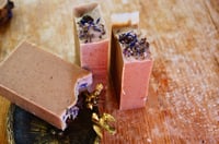 Ingredients Olive Oil, Buttermilk, Coconut Oil, Shea Butter, Sodium Hydroxide, Sunflower Oil, Cocoa Butter, Castor Oil, Sodium Lactate, Kaolin Clay, Lavender, Eucalyptus, Pachouli, Amyris, Peppermint, Sweet Orange Oils, Purple Brazilian Clay, Moroccan Red Clay, Red Sandalwood Powder, botanicals